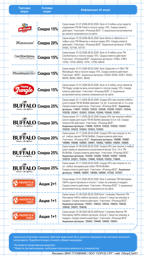 Купи Средство от 4 SKU ТМ Мильбецин Нео и получи скидку 15% МАКСИМАЛЬНАЯ СКИДКА КЛИЕНТА 15%