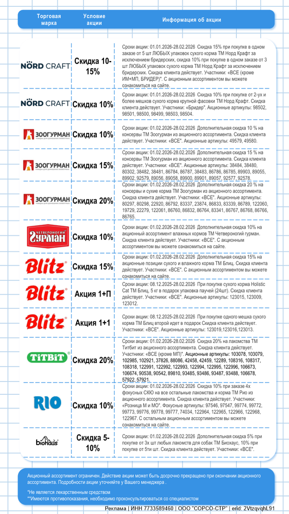 Дополнительная скидка 15% на акционные позиции сухого и влажного корма